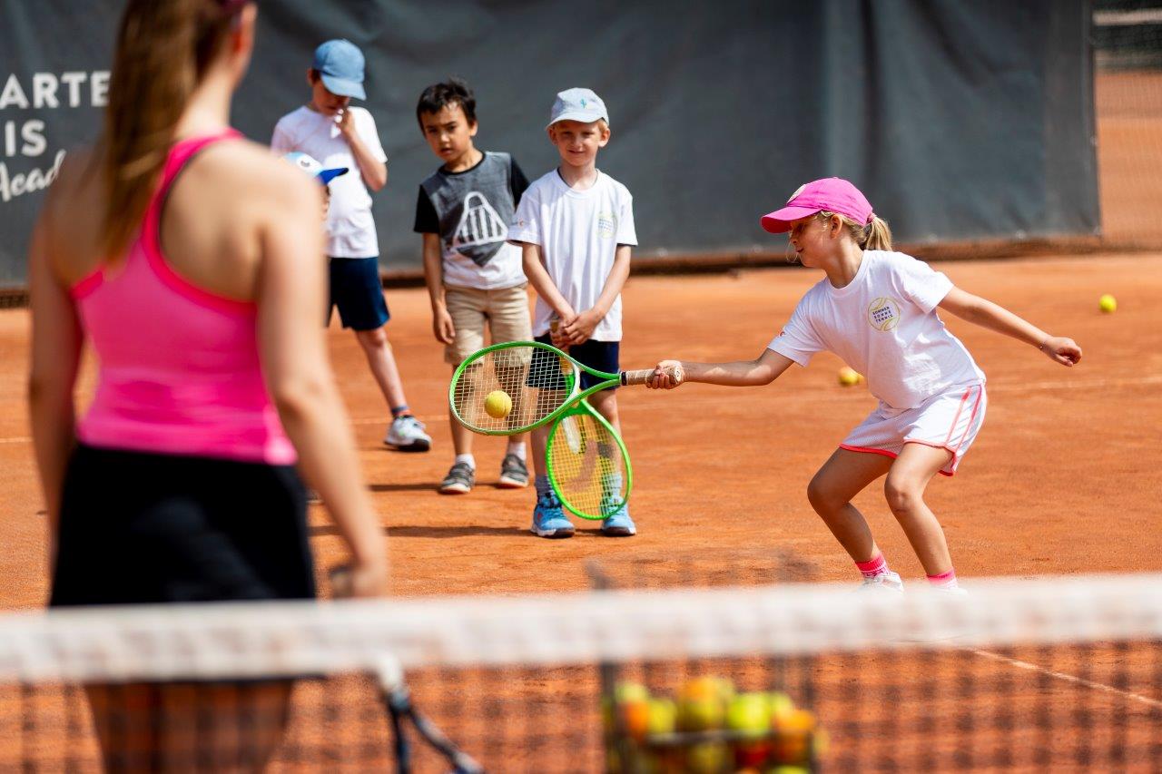 Beim Tenniscamp haben die Kinder 2 Mal täglich Tennistraining. Jede Tennisgruppe besteht aus sechs bis zehn Teilnehmern, die nach Leistungsniveau eingeteilt werden und von geschulten Trainern gefördert werden.